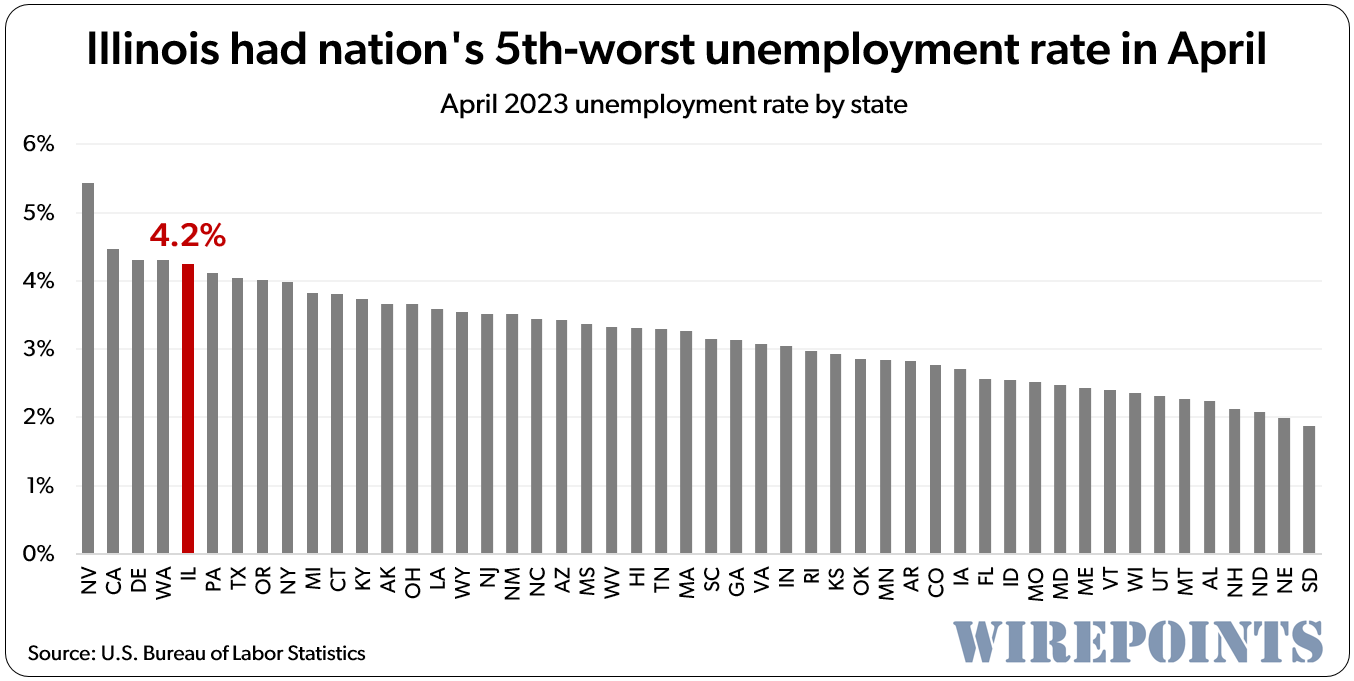 There are hundreds of industrial staffing firms in Illinois, many of them family-owned franchise operations. They may be all at risk because of this law. These businesses employ workers and pay taxes in a state that desperately needs jobs and revenues. According to a recent report by the non-profit research organization Wirepoints, the state in April 2023 had the 5th worse unemployment rate in nation, along with some of the nation's highest taxes: