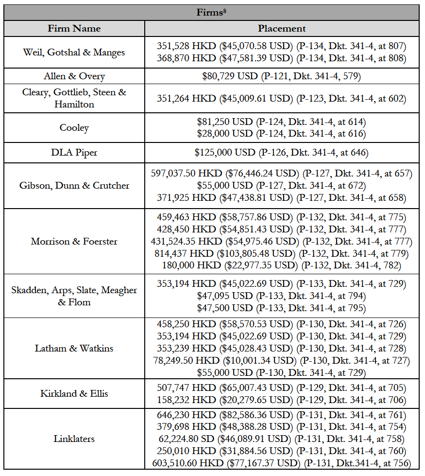 One reason these numbers are so large is because international legal recruiting can be extremely lucrative, as illustrated by the search fees placed into evidence during the trial: