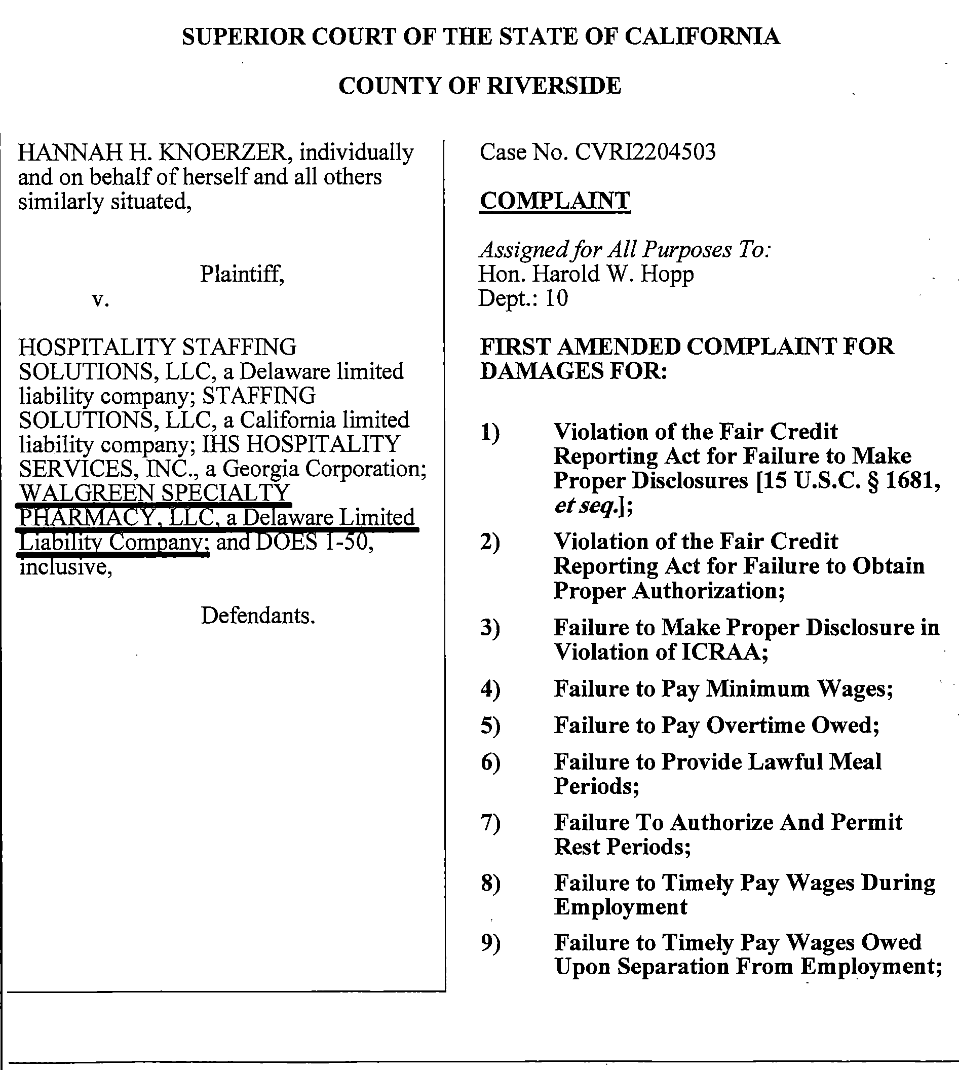 Hospitality Staffing Solutions and Walgreens Face California Class Action